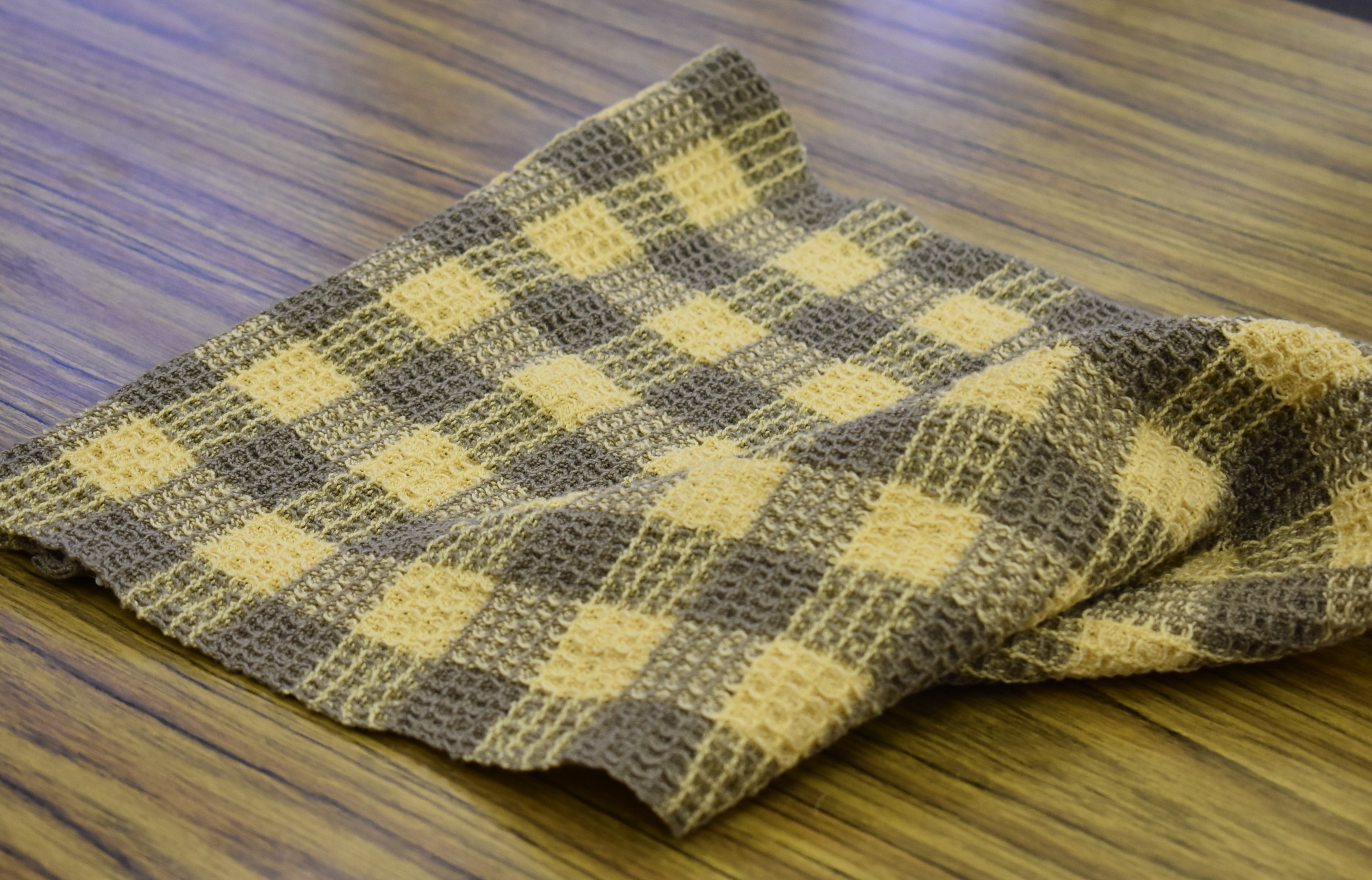 Waffle Weave has little squares that are indented in the center. They look much like a waffle! In this class you will learn the mechanics of weaving waffle weave, but the full effect will not be apparent until the item is washed. It is really three dimensional. You can weave a scarf, a cowl, or towels.
